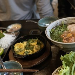 rec: bun cha ha noi, oxtail fried rice I would consider this a higher end vietnamese spot based on the prices, visuals, and water refill rate (u take a sip and they run to refill). imo this should be $$$ not $$ the food was on the salty / rich side but had great flavor! I rly liked the bun cha ha noi: it's unique, flavorful (fish sauce based), well balanced in ingredients, and fun (dipping noodles). portions seemed small but were very filling